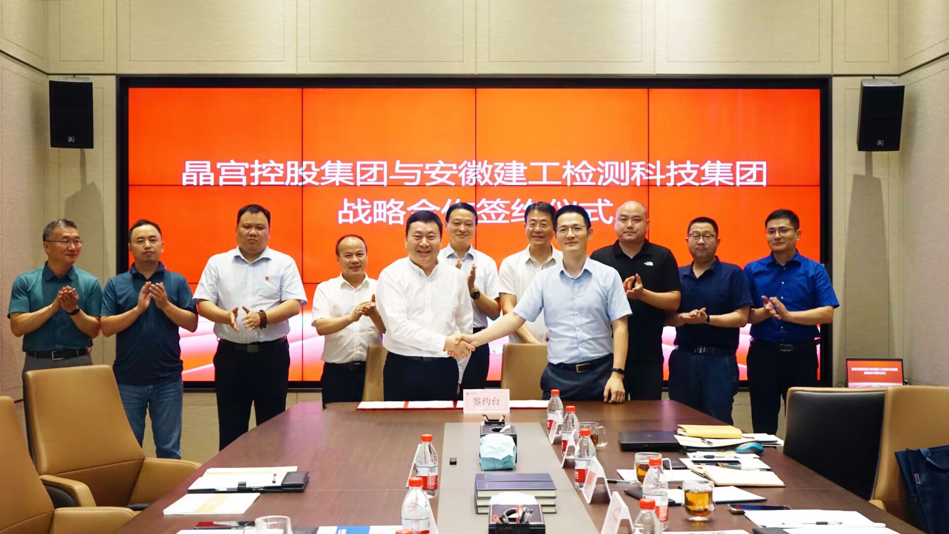 會(huì)后,建工檢測集團(tuán)與晶宮控股集團(tuán)在與會(huì)人員的見證下簽訂了戰(zhàn)略合作協(xié)議。