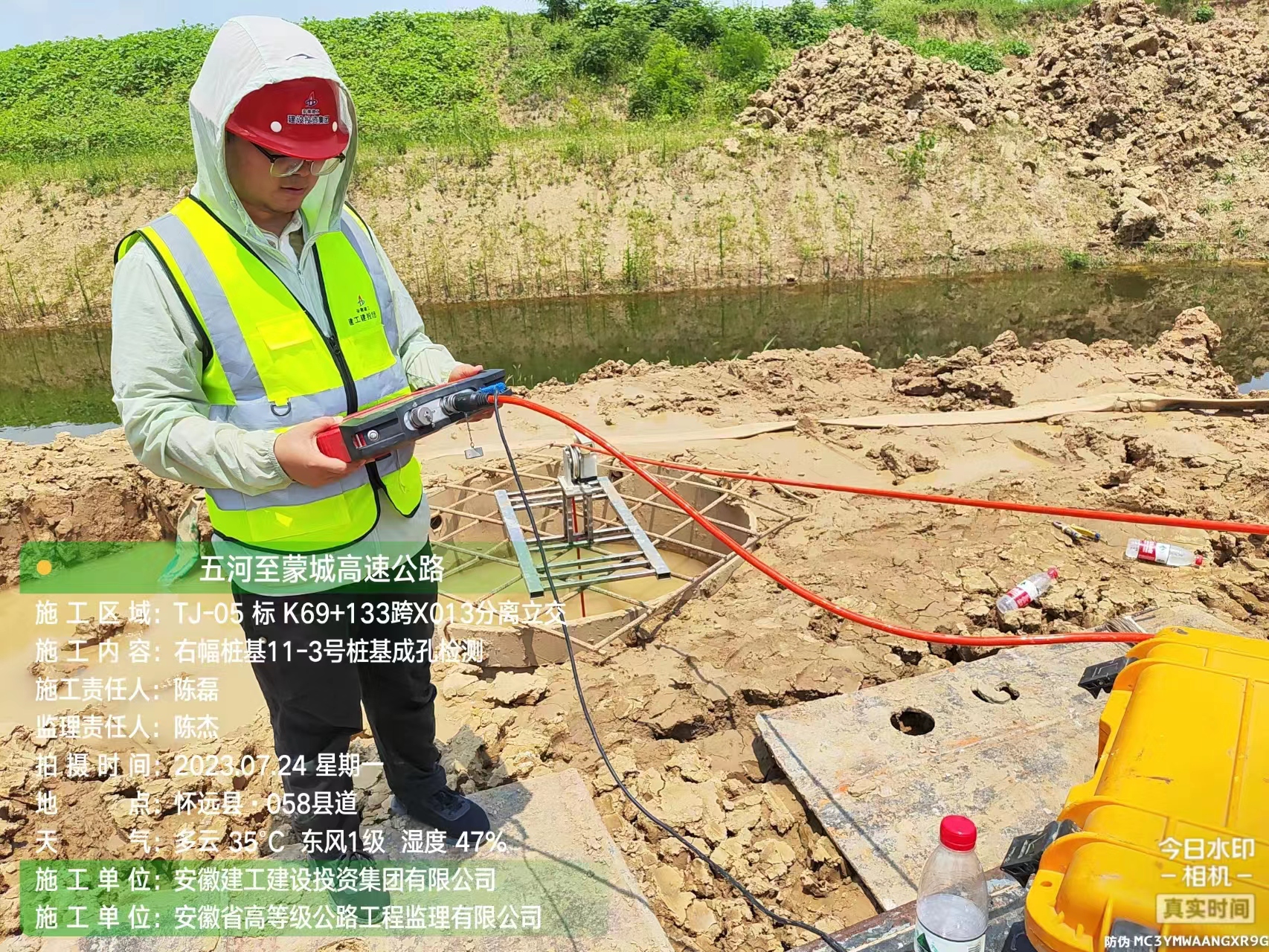 五河至蒙城高速公路項目檢測人員正在進行成孔檢測