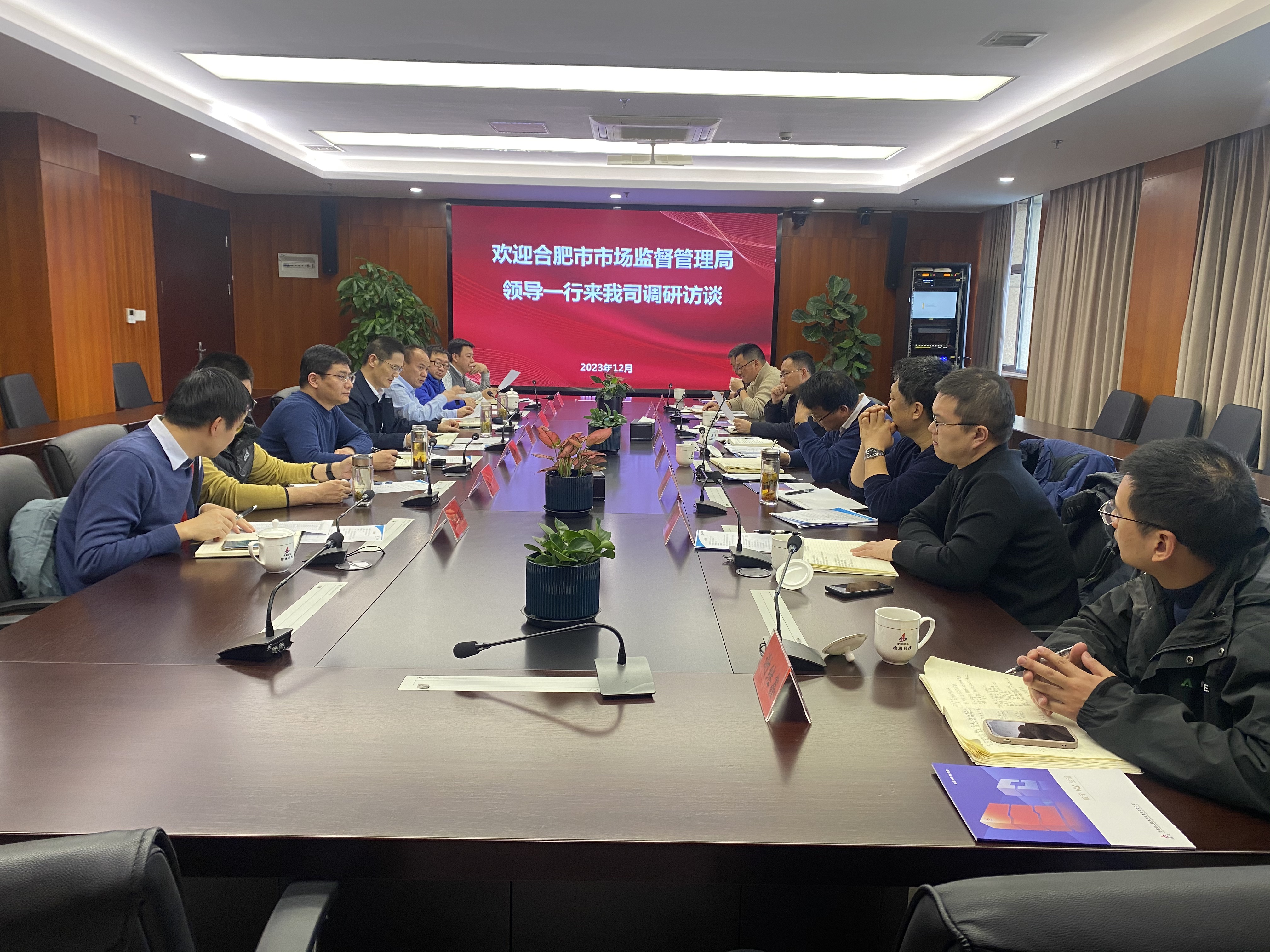 12月27日下午,合肥市市場監督管理局黨組成員、副局長許斌豐一行來我司調研洽談,建工檢測黨委書記、董事長方申柱熱情接待并舉行工作會談。