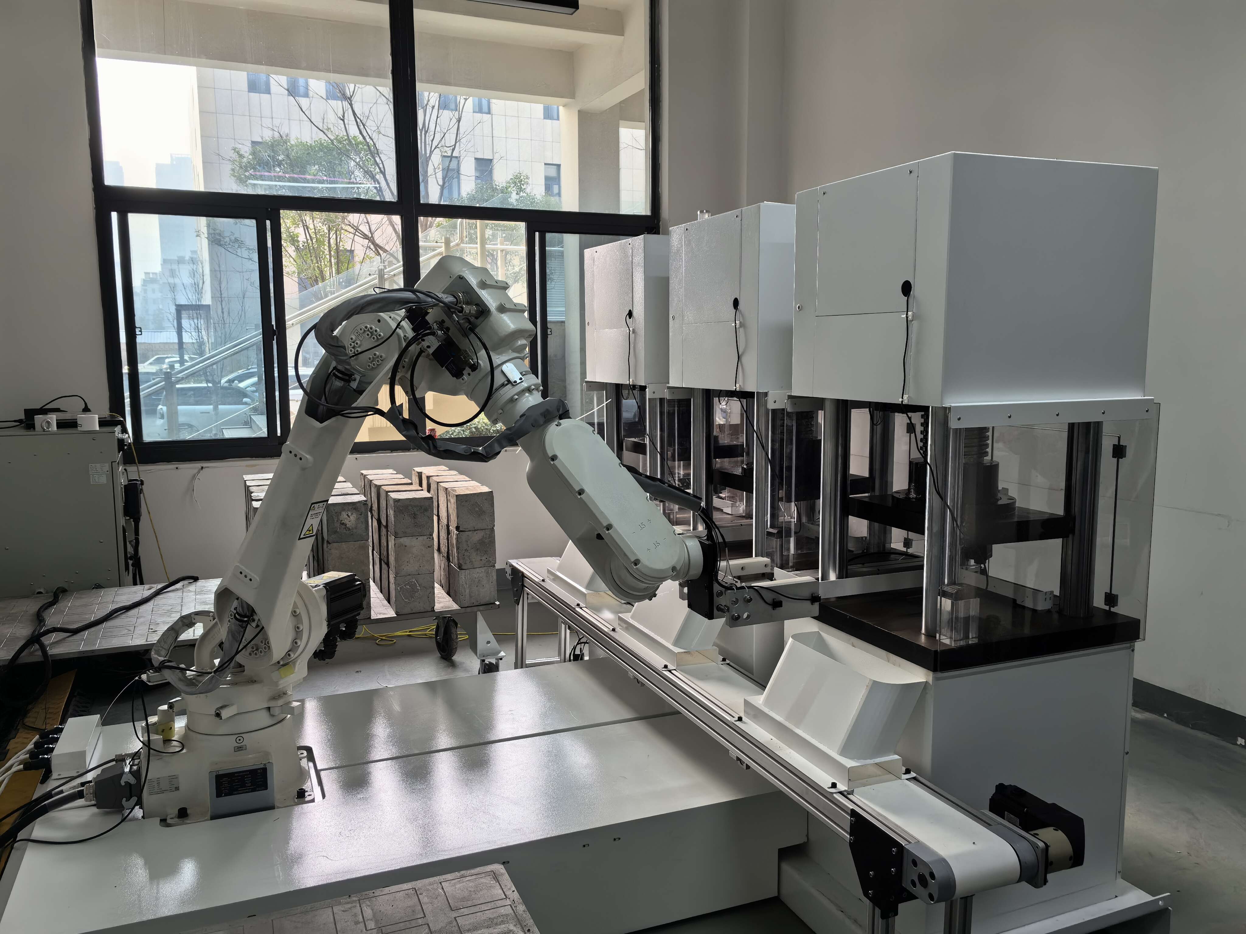近日,建工檢測參與研發的混凝土抗壓強度智能檢測機器人系統在公司本部安裝調試成功,實現了24小時無人化混凝土試件抗壓強度檢測,開創了建工檢測建筑材料智慧化檢測的先河。