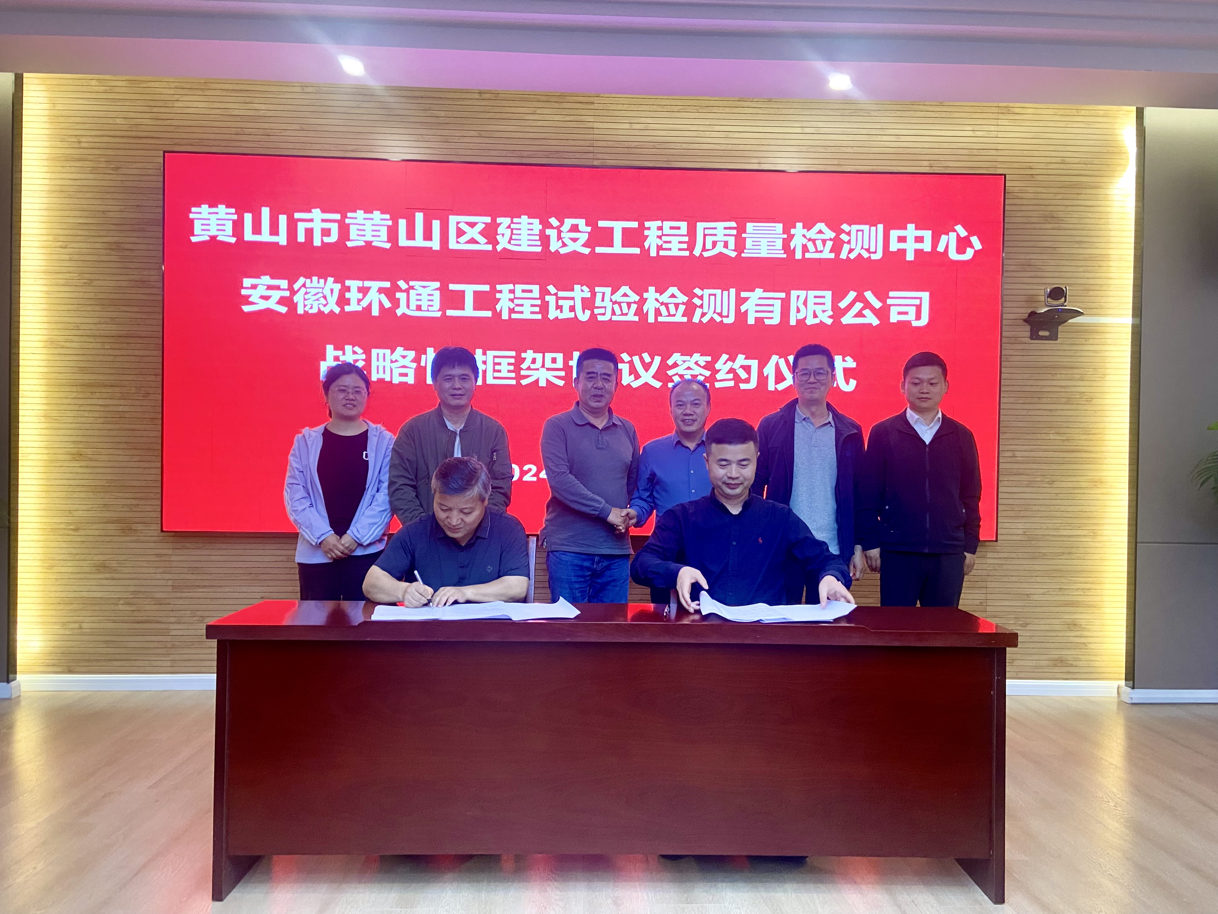 4月18日下午,黃山市黃山區住房和城鄉建設局黨組成員、建設工程質量管理中心主任蔣超一行赴環通公司座談交流。建工檢測黨委委員、副總經理俞振發,環通公司黨總支書記、董事長、總經理韋海濤熱情接待并舉行會談。