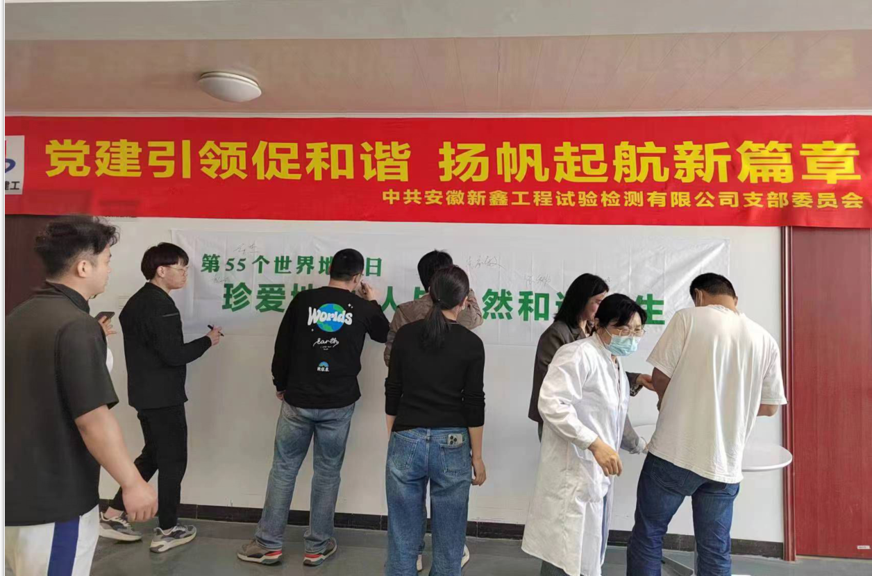 今年的世界地球日主題是“珍愛地球 人與自然和諧共生”,為使環保意識深入人心,人人做到善待自然、愛護地球,新鑫檢測公司通過地球日主題簽名、在辦公區域等地張貼“節約一滴水、一度電、一張紙、一粒糧食”宣傳標識、辦公區域清掃、在微信工作群中發布環保日常小常識等活動,倡導全體員工從從身邊小事做起,珍惜地球資源,減少環境污染,引導職工樹立“綠水青山就是金山銀山”和“人與自然和諧共生”的生態理念。