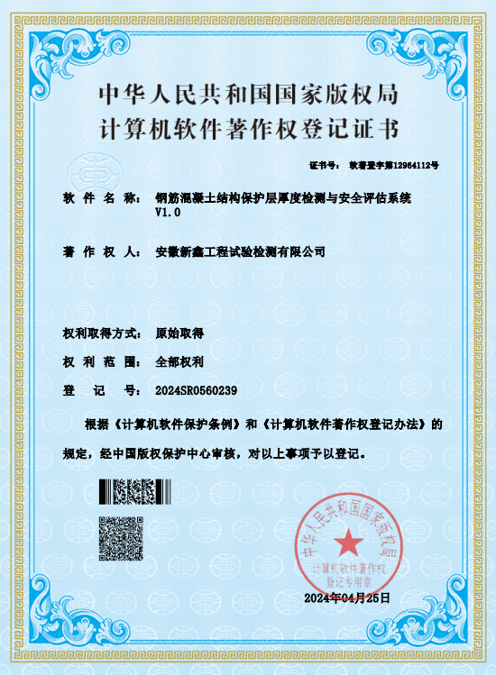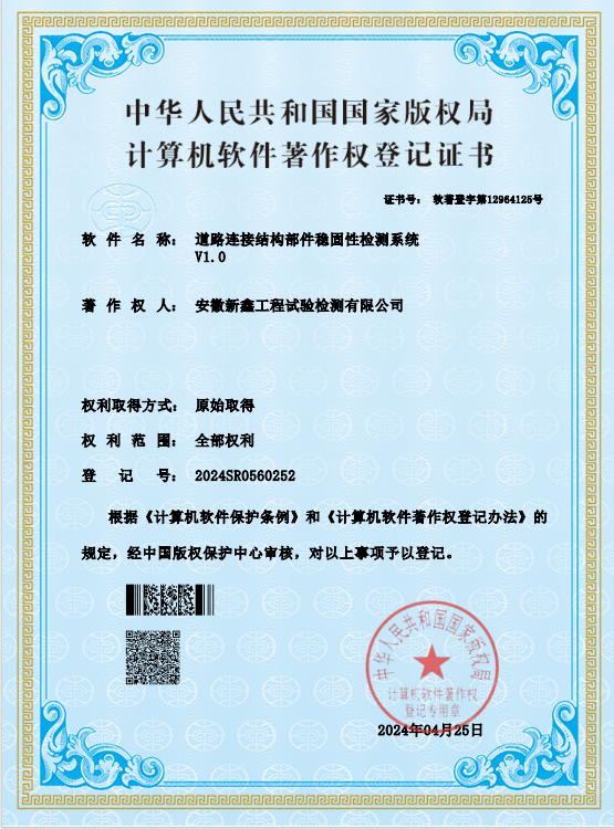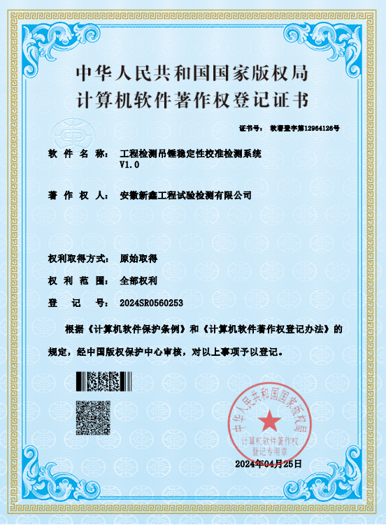喜訊!安徽新鑫工程試驗檢測有限公司喜獲5項軟件著作權