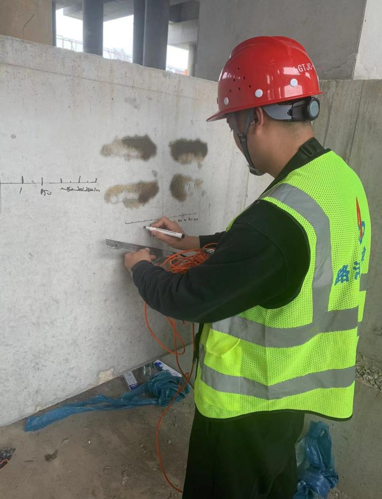 范春生,路港通檢測(cè)外檢事業(yè)部檢測(cè)員,正在對(duì)一項(xiàng)目的混凝土結(jié)構(gòu)進(jìn)行裂縫深度的檢測(cè)。混凝土結(jié)構(gòu)的裂縫是結(jié)構(gòu)問(wèn)題中最常見(jiàn)的。深度是評(píng)估其安全性的重要指標(biāo)之一。掌握混凝土測(cè)裂縫深度的方法和意義,可以幫助大家更好地了解混凝土結(jié)構(gòu)的安全性,及時(shí)發(fā)現(xiàn)結(jié)構(gòu)裂縫問(wèn)題,采取相應(yīng)的措施進(jìn)行修復(fù)和加固,有效預(yù)防結(jié)構(gòu)事故的發(fā)生。