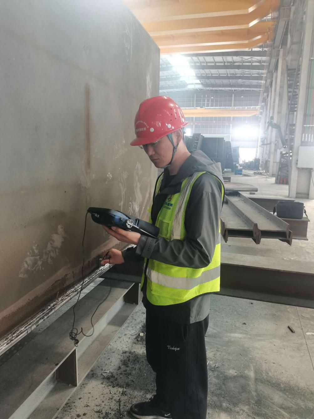 李興旭,路港通檢測(cè)安全部副部長(zhǎng),受安徽建工路港建設(shè)集團(tuán)有限公司委托,對(duì)徐淮阜高速公路亳州段路基03標(biāo)項(xiàng)目鋼箱梁,進(jìn)行超聲波無(wú)損檢測(cè),利用超聲波探傷儀能夠準(zhǔn)確、及時(shí)地檢測(cè)出鋼箱梁焊縫區(qū)域的微小缺陷及結(jié)構(gòu)變化,尤其是在項(xiàng)目工期緊,任務(wù)重時(shí),能有效的反映焊縫真實(shí)情況,并反饋給項(xiàng)目部,嚴(yán)格把控工程質(zhì)量,為項(xiàng)目建設(shè)保駕護(hù)航。
