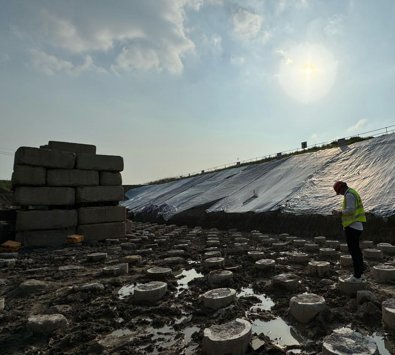陶海飛,路港通檢測(cè)事業(yè)部副部長(zhǎng),近日在合肥東航碼頭開(kāi)展CFG樁單樁豎向承載力靜載試驗(yàn)。試驗(yàn)采用了100噸位配重反力系統(tǒng),并按照行業(yè)標(biāo)準(zhǔn)進(jìn)行了分級(jí)加載。為項(xiàng)目施工提供有效依據(jù),進(jìn)一步提高了該項(xiàng)目的工程質(zhì)量水平。