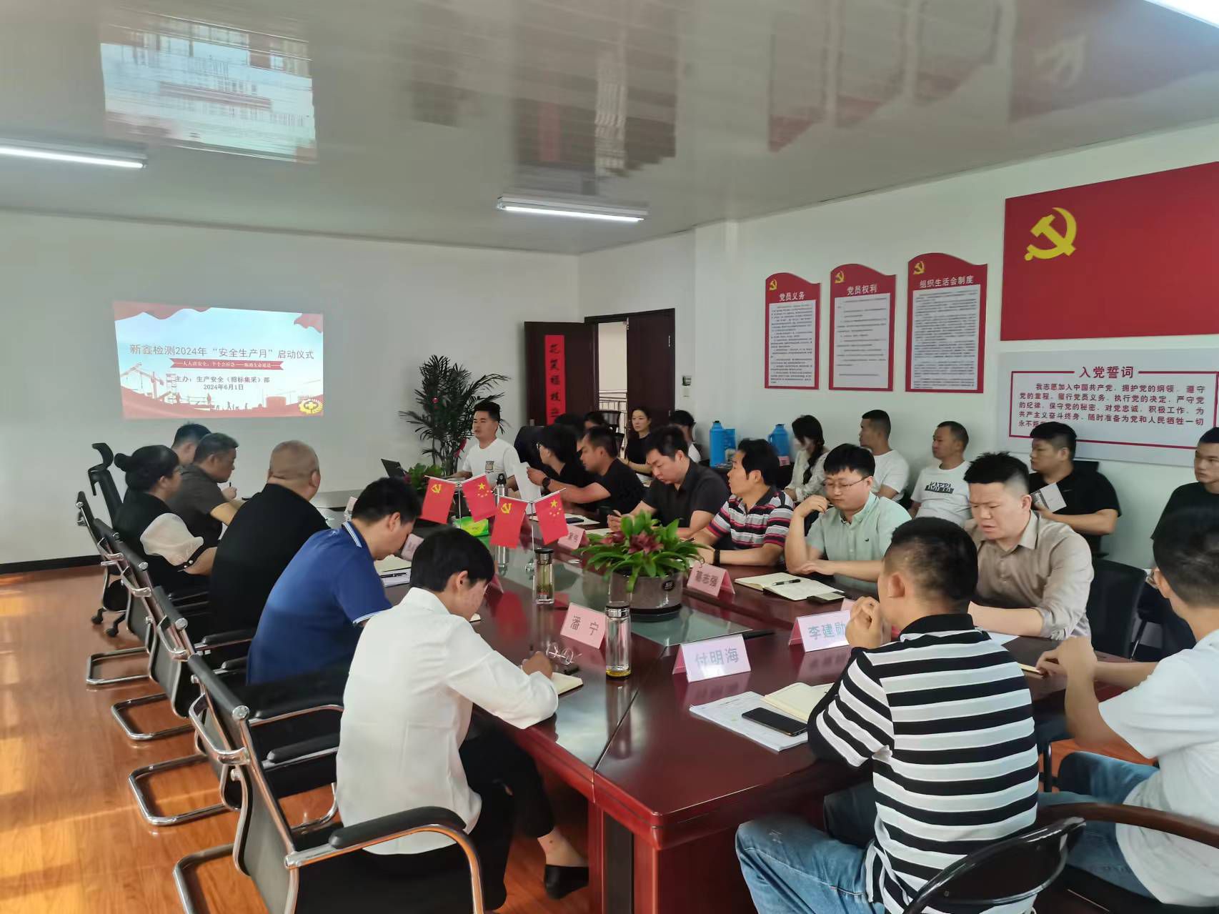 啟動儀式上,傳達學習了建工檢測2024年“安全生產月”活動啟動會會議精神。與會人員共同學習了新鑫檢測“安全生產月”活動方案,集中觀看了《全國安全生產月特別報道——生命通道》,隨后進行了安全宣誓。儀式結束后,所有參會人員在印有“人人講安全,個個會應急——暢通生命通道”的橫幅上簽字。