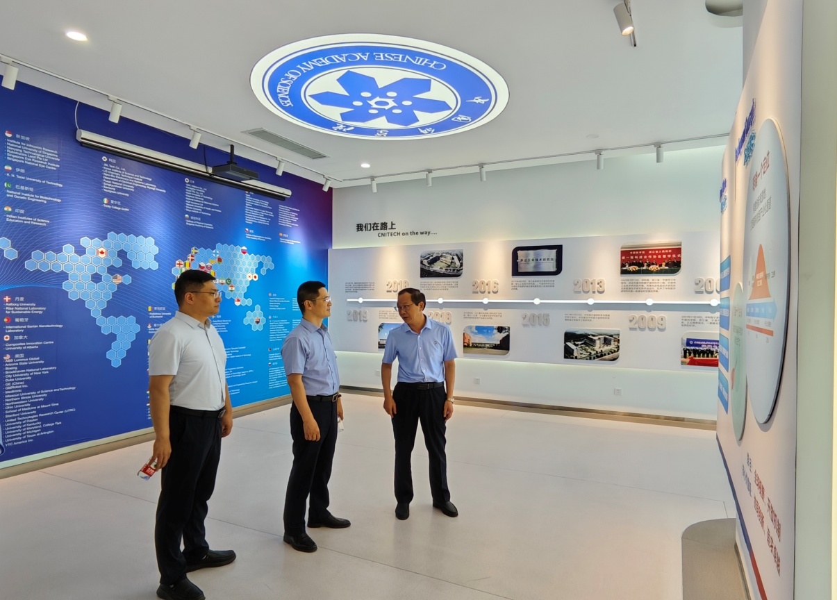 調研組參觀中科院寧波材料所展廳,中科院寧波材料所、國家新材料測試評價中心總經理助理余立架介紹了寧波材料所的發展歷程、產業布局及建設成果。