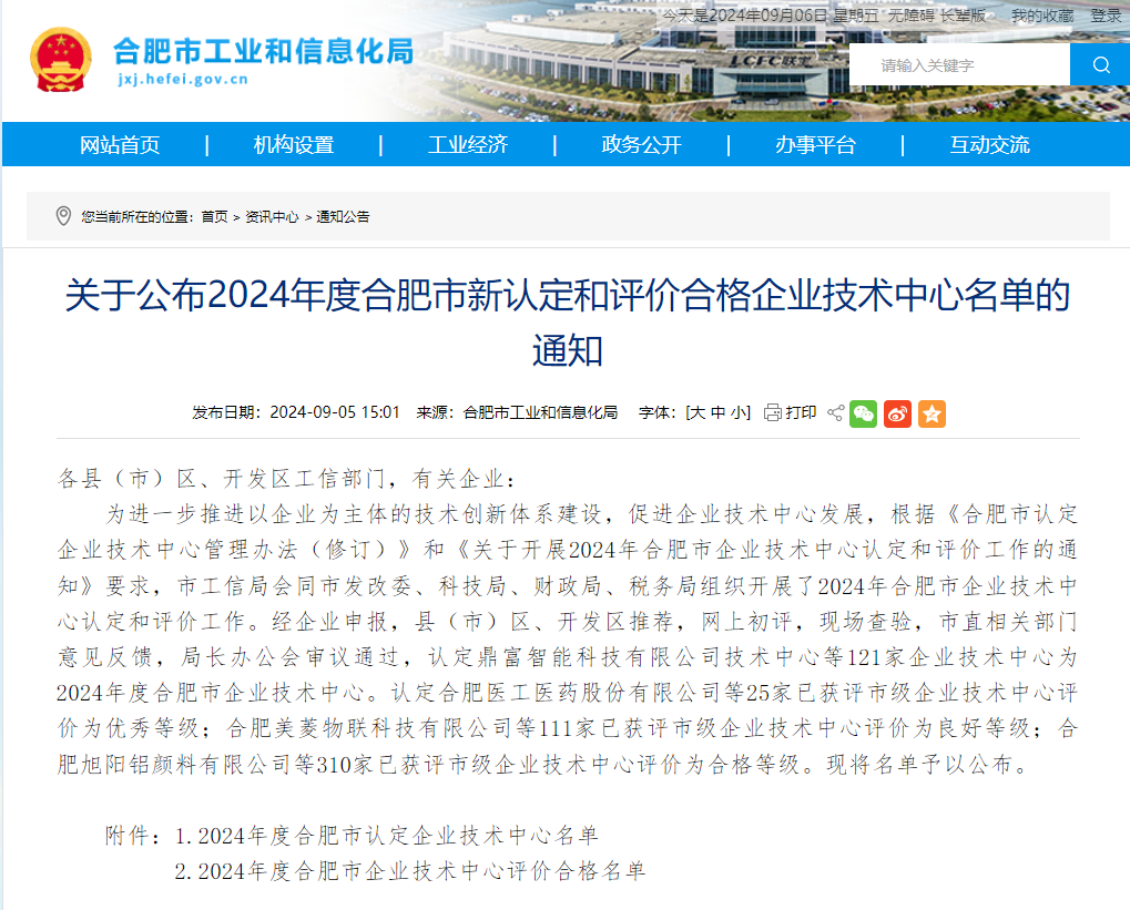 喜報(bào)!建工檢測環(huán)通公司技術(shù)中心被認(rèn)定為2024年度合肥市企業(yè)技術(shù)中心
