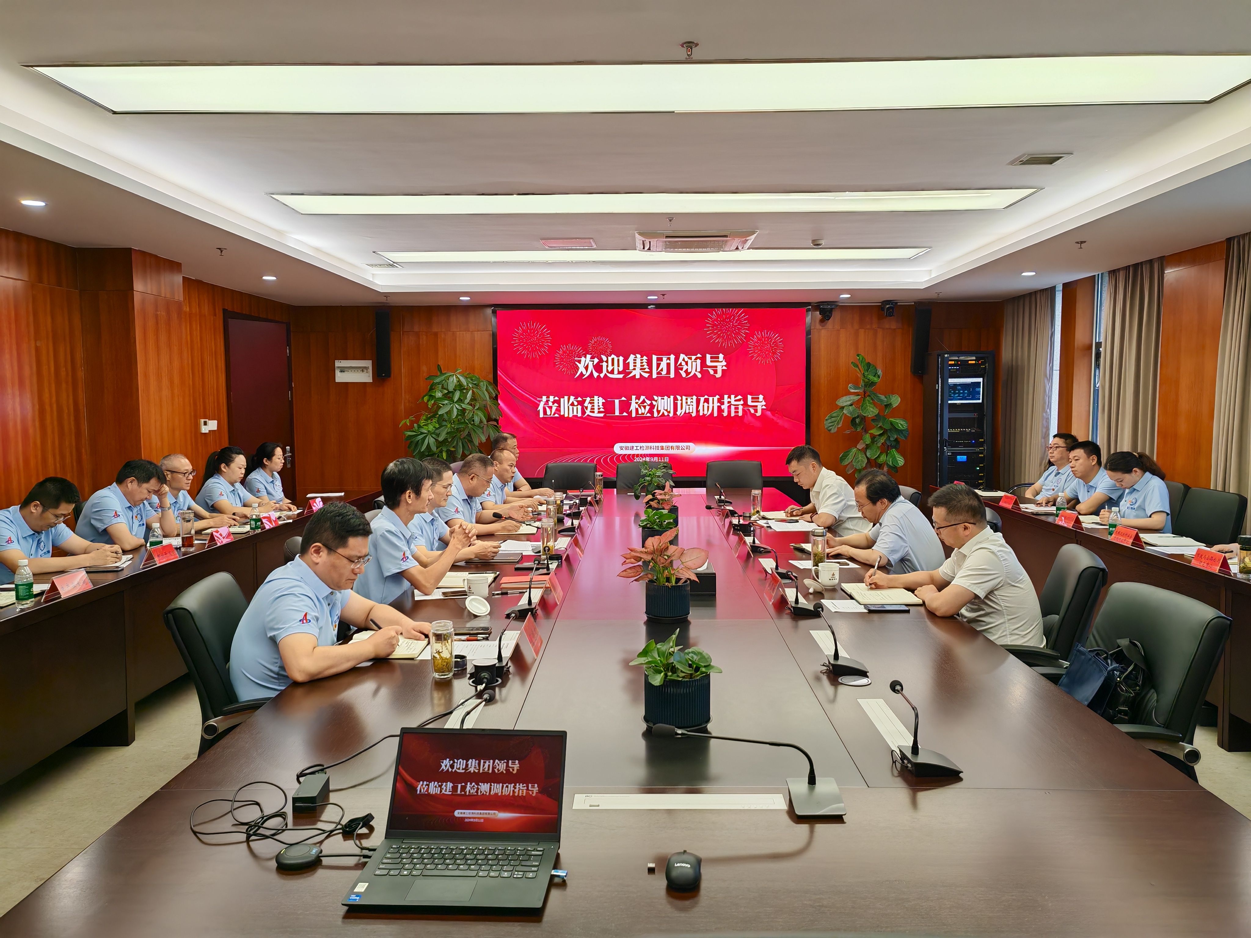 9月11日上午,集團黨委二十屆三中全會宣講第六組組長、建工股份黨委副書記、副董事長、總經理李有貴赴建工檢測宣講黨的二十屆三中全會精神并開展調研,建工檢測黨委書記、董事長方申柱主持會議。