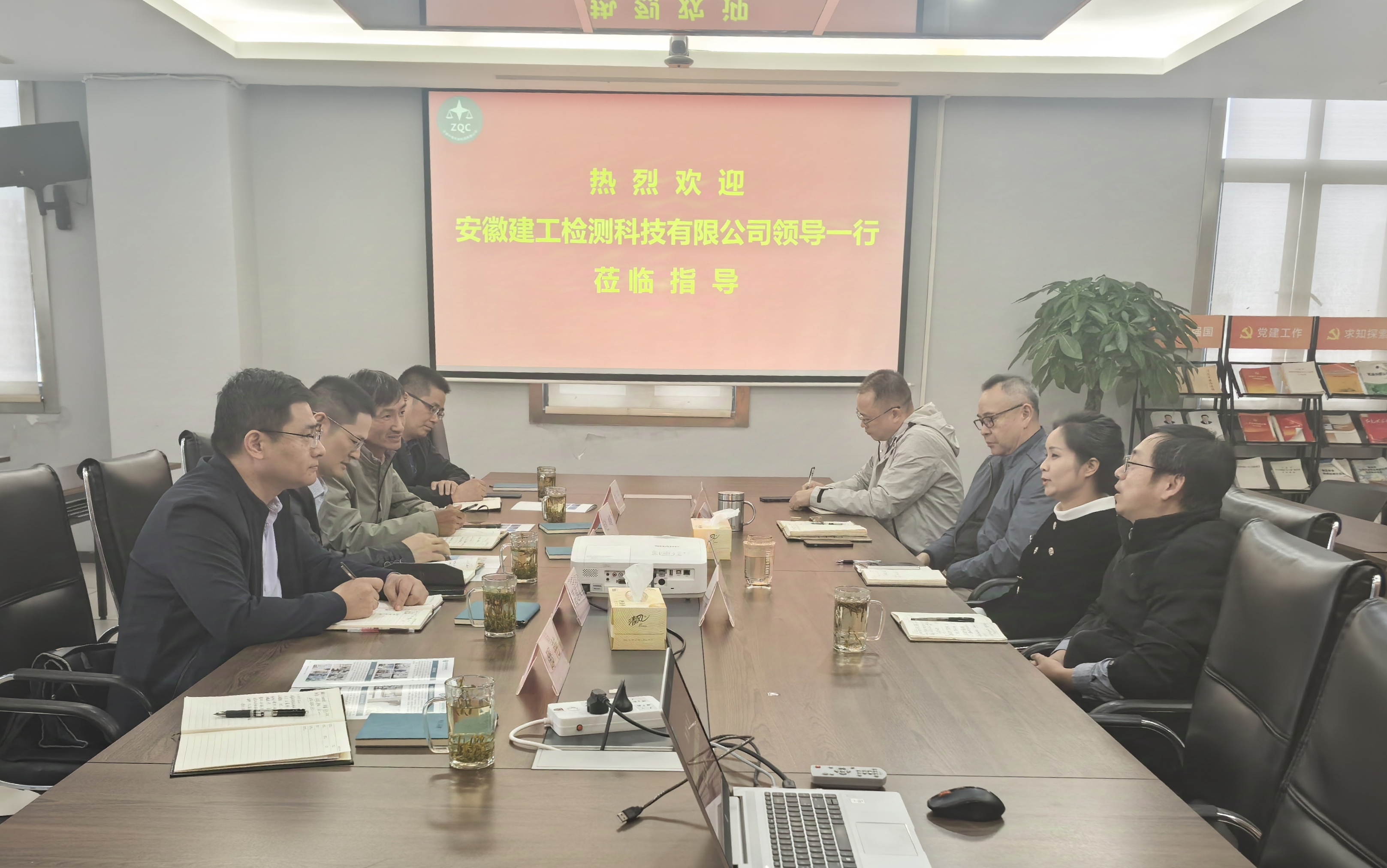 安徽中青公司領導陳戈、宋誠云,建工檢測領導趙峰、葛道文,雙方相關部門負責同志參加此次調研活動。