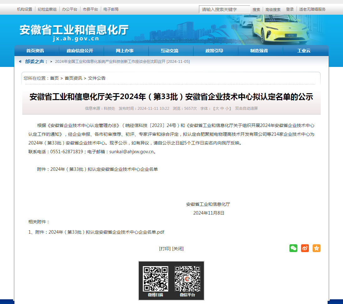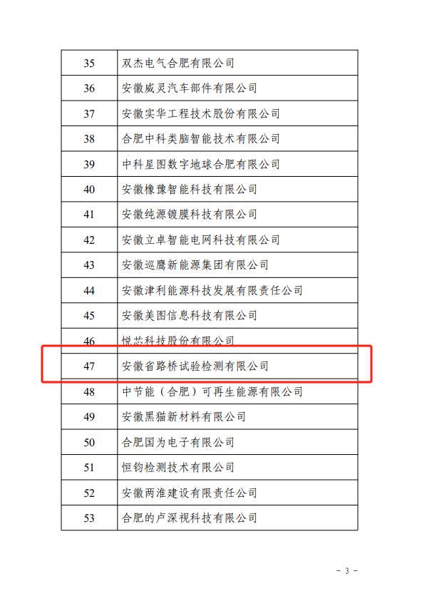 近日,安徽省工信廳對2024年(第33批)安徽省企業技術中心擬認定名單進行公示,經企業申報、各市初審推薦、初評、專家評審和綜合評定等程序,建工檢測所屬子公司安徽省路橋試驗檢測有限公司成功入選。