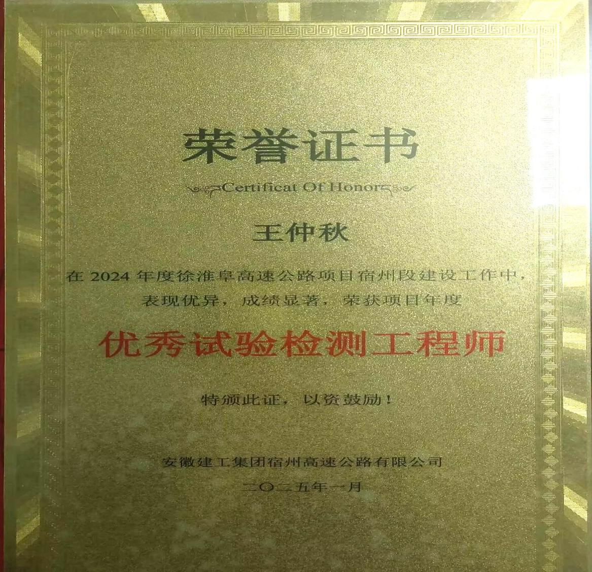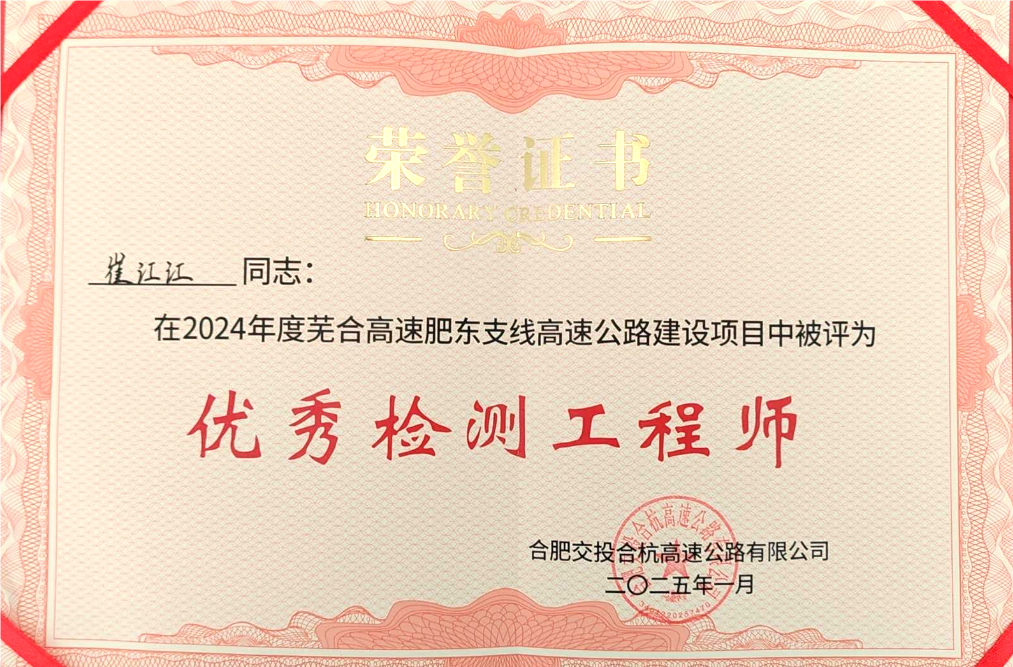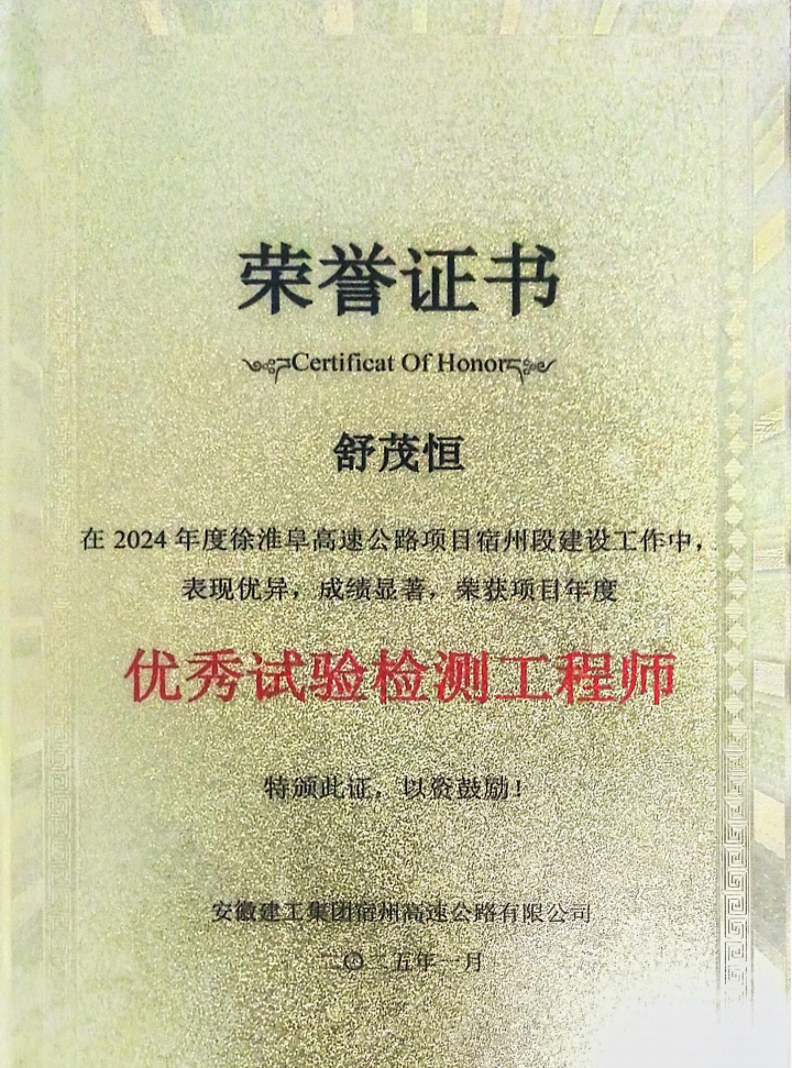 近日,路港通公司多個(gè)工地試驗(yàn)室主任榮獲業(yè)主方頒發(fā)的2024年度“優(yōu)秀試驗(yàn)檢測工程師”的稱號(hào)。