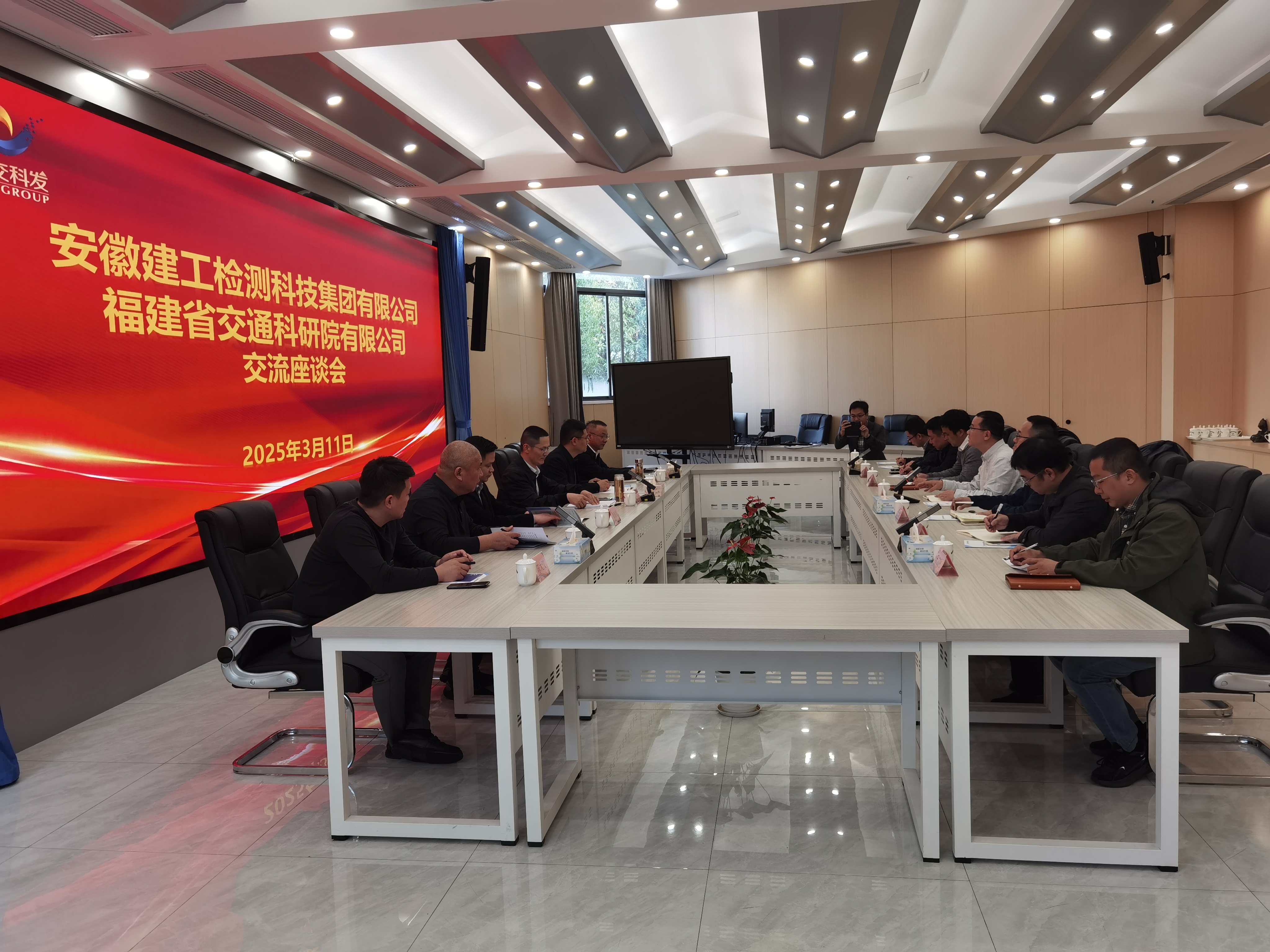 安徽建工集團福建分公司副總經理胡曉東、安徽建工檢測科技集團有限公司黨委委員、副總經理、總工程師葛道文、福建省交科工程檢測公司總經理蔡亦來、福建省交通科研院有限公司科研創新分院院長馬子嶸,雙方有關單位和部門負責同志參加交流。