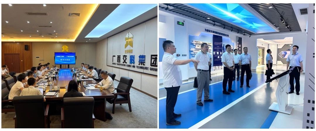 ▲與廣西交科集團黨委委員、副總經理、總工程師熊劍平座談交流,并參觀企業展廳。
