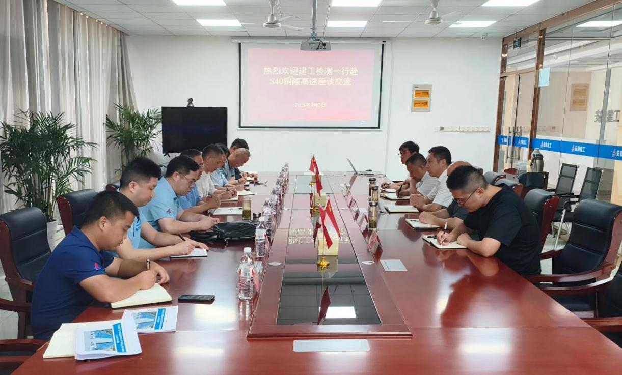 雙方就集團特許經營項目高質量建設保障工作開展情況進行深入交流,進一步壓實責任、細化舉措,全面落實“保檢測”工作,為集團重點項目高質量推進提供堅實檢測保障。會后,郭楊一行到S40銅陵段2標段工地試驗室調研。