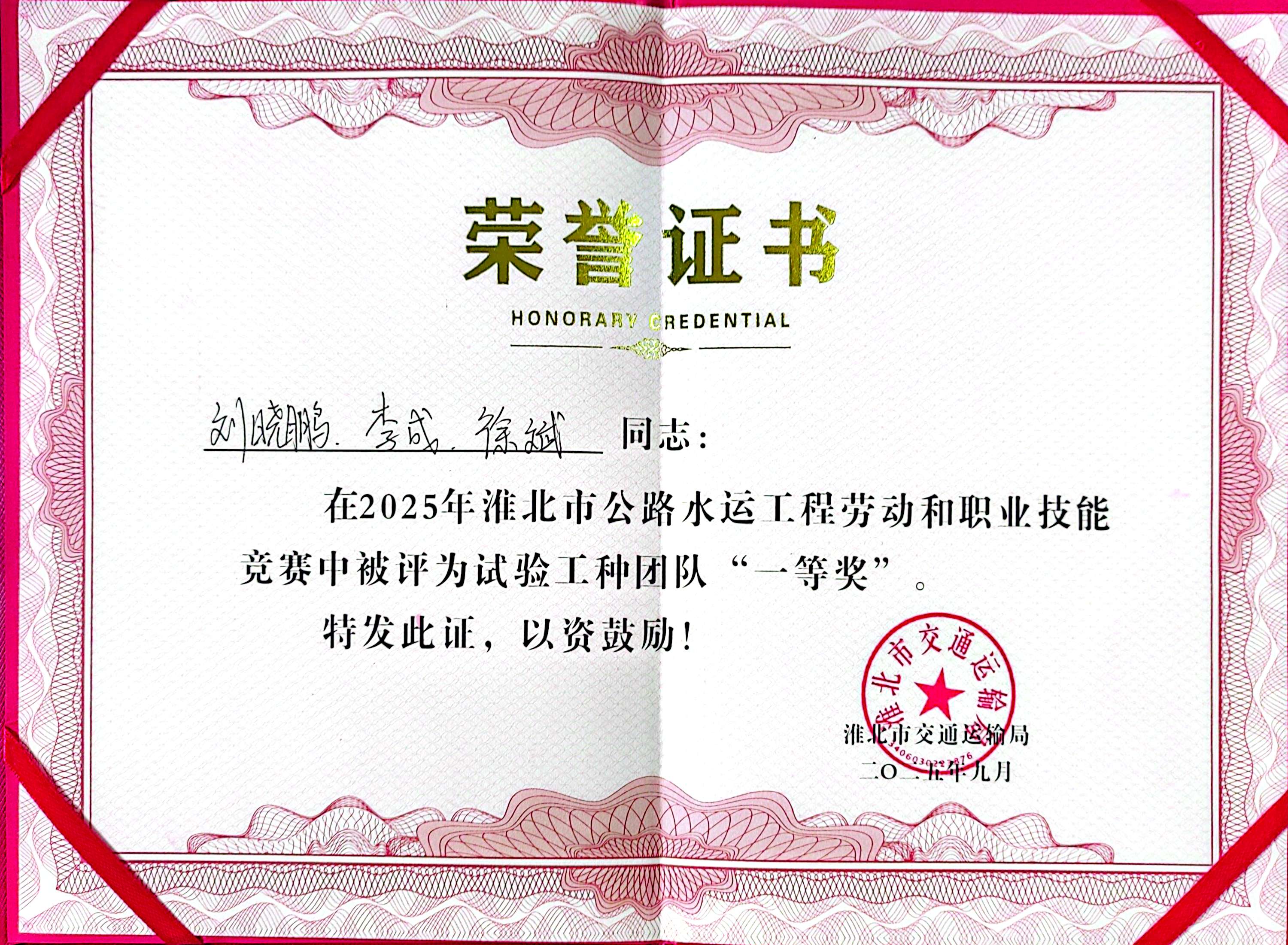 此次獲獎,既是對公司技能人才培養成果的肯定,更激勵著全體員工以賽促學、以學促干,為淮北市公路水運工程高質量發展貢獻更多力量。