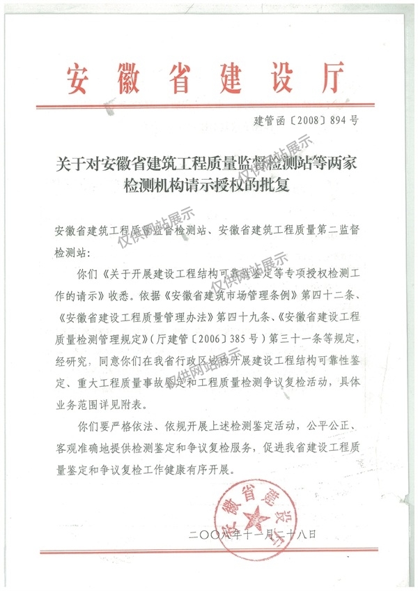 “可靠性鑒定、重大工程質量事故鑒定、工程質量檢測爭議復檢”專項授權