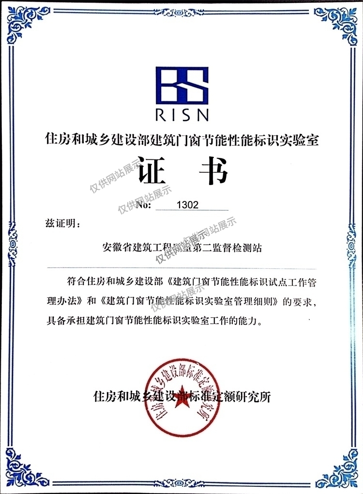 住房和城鄉建設部門窗節能性能標識實驗室證書