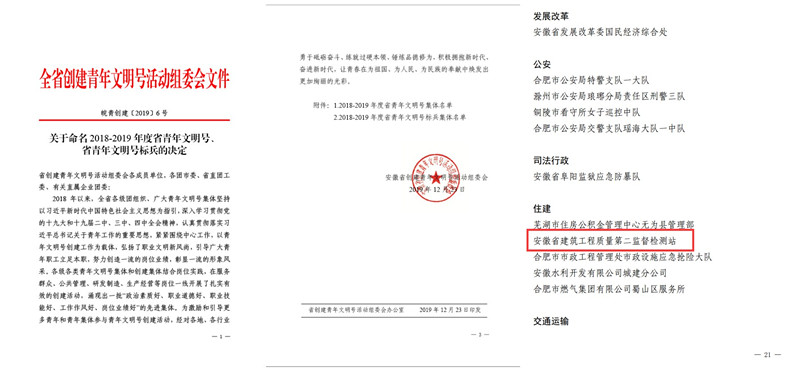 近日,從安徽省住建廳創(chuàng)建青年文明號活動組委會傳來喜訊,安徽建科質檢二站被命名為2018-2019年度 “青年文明號標兵”榮譽稱號,在二站榮譽墻上再添一抹青春色彩。