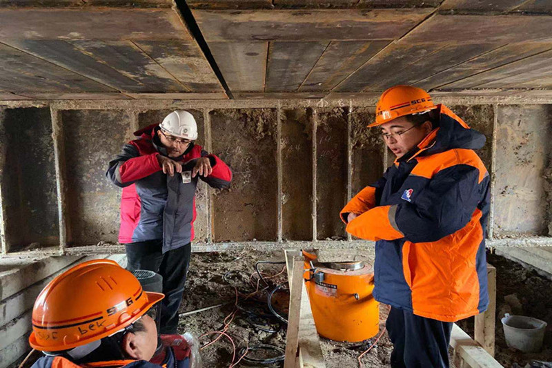 二站巖土分院作為承接單位,對該項目高度重視,前期與上海建工就技術問題進行了充分溝通,制定了全面而細致的檢測方案,在當?shù)刂谱髁虽摿骸⑴渲氐却笮驮O備,以確保檢測現(xiàn)場能夠順利實施,同時于2019年12月外派強光玉、陳明兩位優(yōu)秀項目經(jīng)理長駐現(xiàn)場提供專業(yè)檢測服務。同志們克服氣候嚴寒、語言不通、水土不服的困難,不僅順利啟動了檢測工作,而且一個月內(nèi)完成了總工作量的50%,給總包單位節(jié)約了工期,以嚴謹?shù)墓ぷ髯黠L和優(yōu)質(zhì)的服務展現(xiàn)了安徽建科質(zhì)檢二站的風采,得到了現(xiàn)場各方主體單位的一致好評,樹立了安徽建科人敬業(yè)奉獻、艱苦奮斗的良好職業(yè)形象。