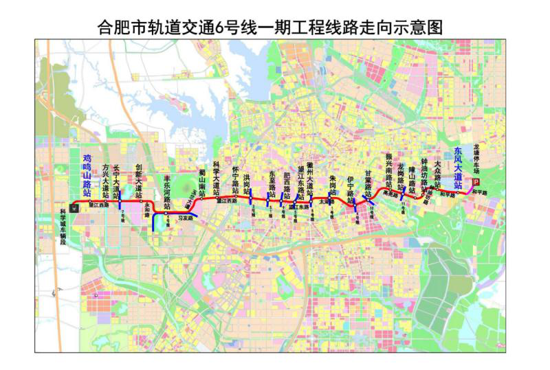 合肥軌道交通6號線西起高新區,經蜀山區,包河區,瑤海區,東至肥東縣,貫穿合肥市望江路城市主干道,初步形成城市東西向快速走廊,線路全長約44千米。軌道交通網絡初步形成,有利于進一步緩解合肥市交通擁堵,方便市民出行、促進區域經濟社會協調發展、進一步強化合肥作為全國重要綜合性交通樞紐的地位。
