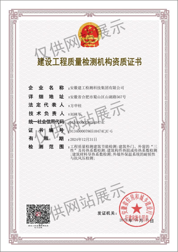 建設工程質量檢測機構資質證書(建筑幕墻)