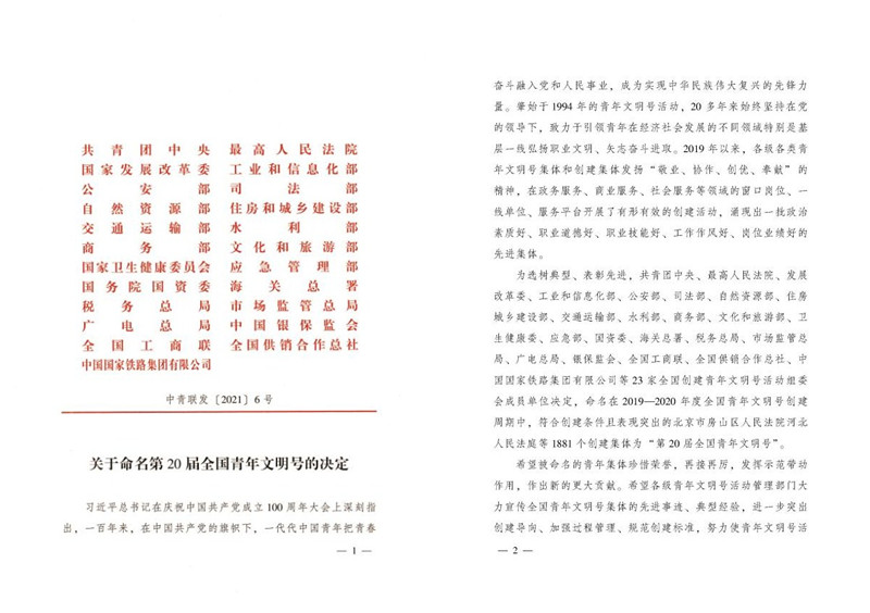 喜訊!二站榮獲“第20屆全國(guó)青年文明號(hào)”榮譽(yù)稱號(hào)