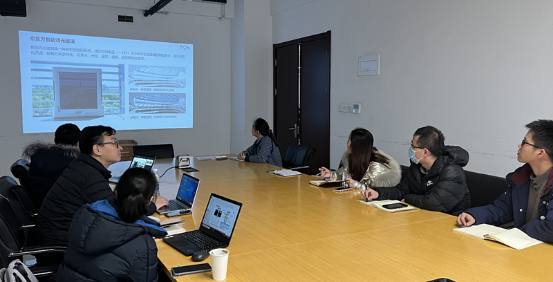 北京京東方顯示技術(shù)有限公司一行參觀了實驗樓、實驗室,聽取了門窗幕墻所的相關(guān)介紹,隨后開展了技術(shù)交流。會上,京東方代表主要介紹了智慧視窗(Smart Windows)的基本原理、主流競爭技術(shù)、節(jié)能設(shè)計與計算,在軌道交通、建筑門窗、建筑幕墻、采光頂?shù)阮I(lǐng)域的應(yīng)用,重點展示了北京冬奧專列、時速 600 km 磁懸浮列車、中國科學(xué)技術(shù)大學(xué)西區(qū)學(xué)術(shù)交流中心等典型應(yīng)用案例。雙方還就成本、安全性、耐久性等內(nèi)容進行交流,并重點討論了標準參數(shù)、綠色建筑認證、節(jié)能材料認證、標準申報、產(chǎn)品地區(qū)推廣等相關(guān)內(nèi)容。