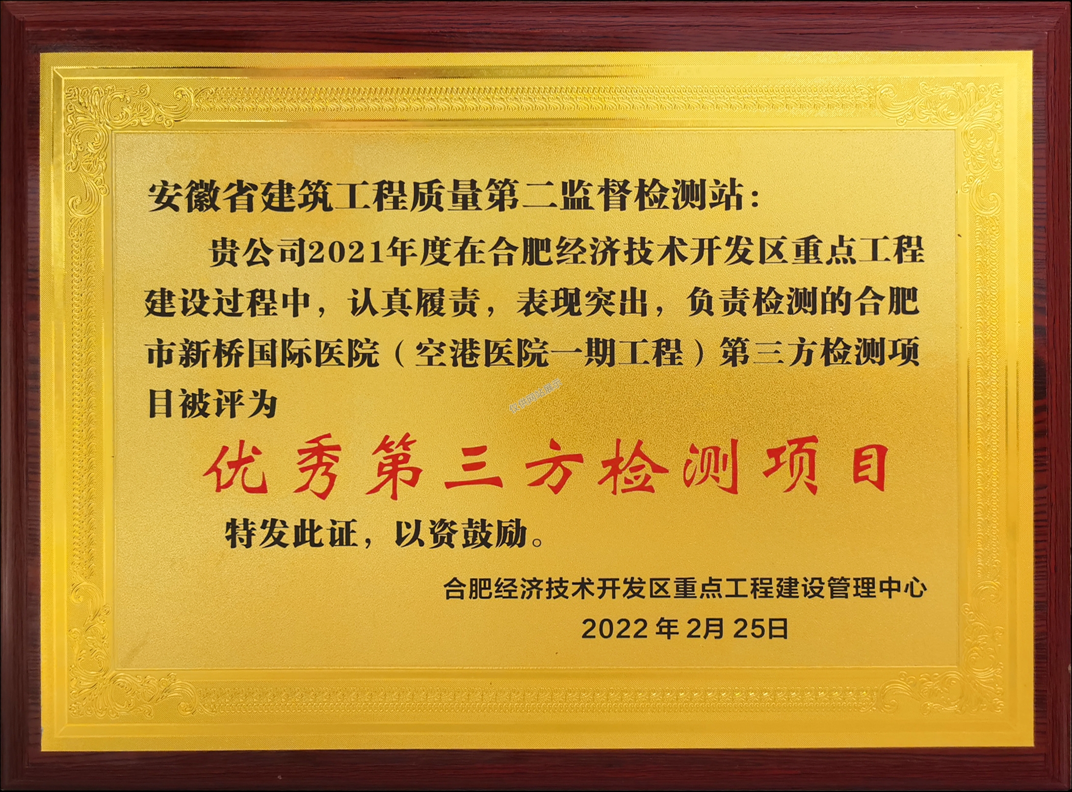 優(yōu)秀第三方檢測(cè)項(xiàng)目獎(jiǎng)狀