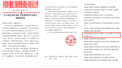 喜訊!合肥市中心圖書館第三方工程質量檢測項目部青年集體榮獲集團“青年文明號”稱號