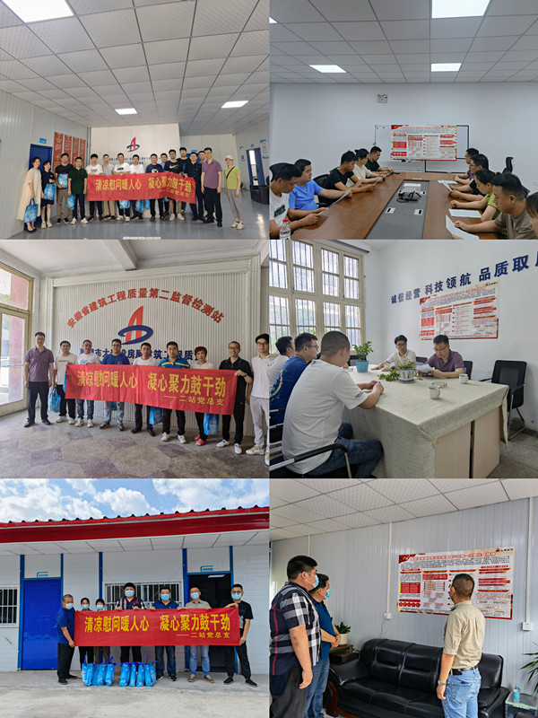 在宣講現場,二站兩級黨組織班子成員領學宣講了建工控股第一次黨代會精神,并以規范管理、檢測質量、安全生產等重點工作為切入點,組織大家圍繞黨代會精神說感受、提意見、談發展,力求講實際不淺俗、講理論不空洞,將黨代會繪就的藍圖根植于思想深處,不折不扣推動黨代會精神入腦入心、落地生根。慰問中,二站兩級黨組織班子成員詳細了解了一線員工的生活狀況以及現場項目工作情況,對大家不畏高溫、飽滿激昂的工作作風給予了充分肯定,同時向他們表達了黨組織的誠摯問候,發放了防疫物資和防暑降溫用品。