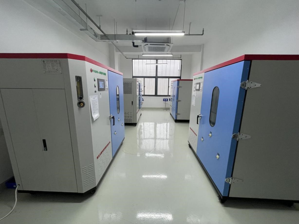 該試驗室為環境與衛生測評所裝飾裝修板材試驗室,主要是用于對人造板材(木工板、隔音板、阻燃板等)、人造復合地板及塑膠跑道的檢測。檢測項目包括甲醛釋放量和塑膠跑道中苯系物、VOCs和二硫化碳的釋放量。此試驗室主要配備的儀器設備有三臺環境氣候箱和一臺小型環境測試艙等。